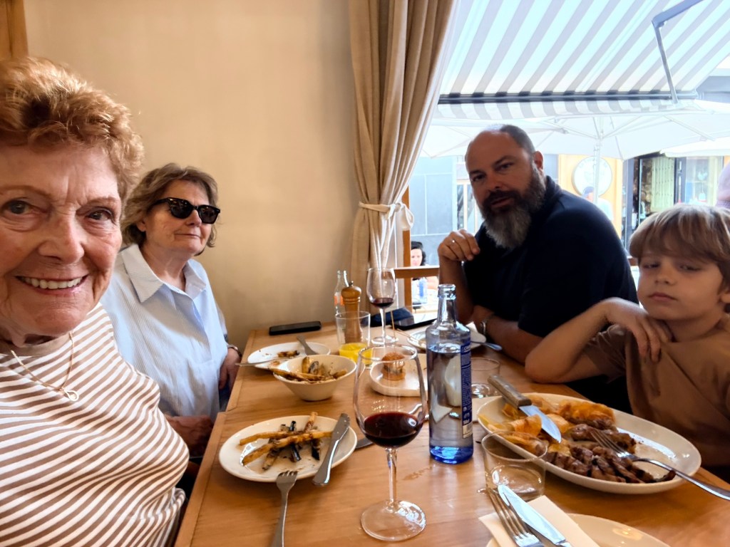 Vi blev bjudna på svart pasta med lax av ägarna som är italienare, mannen är kock, jättegott.