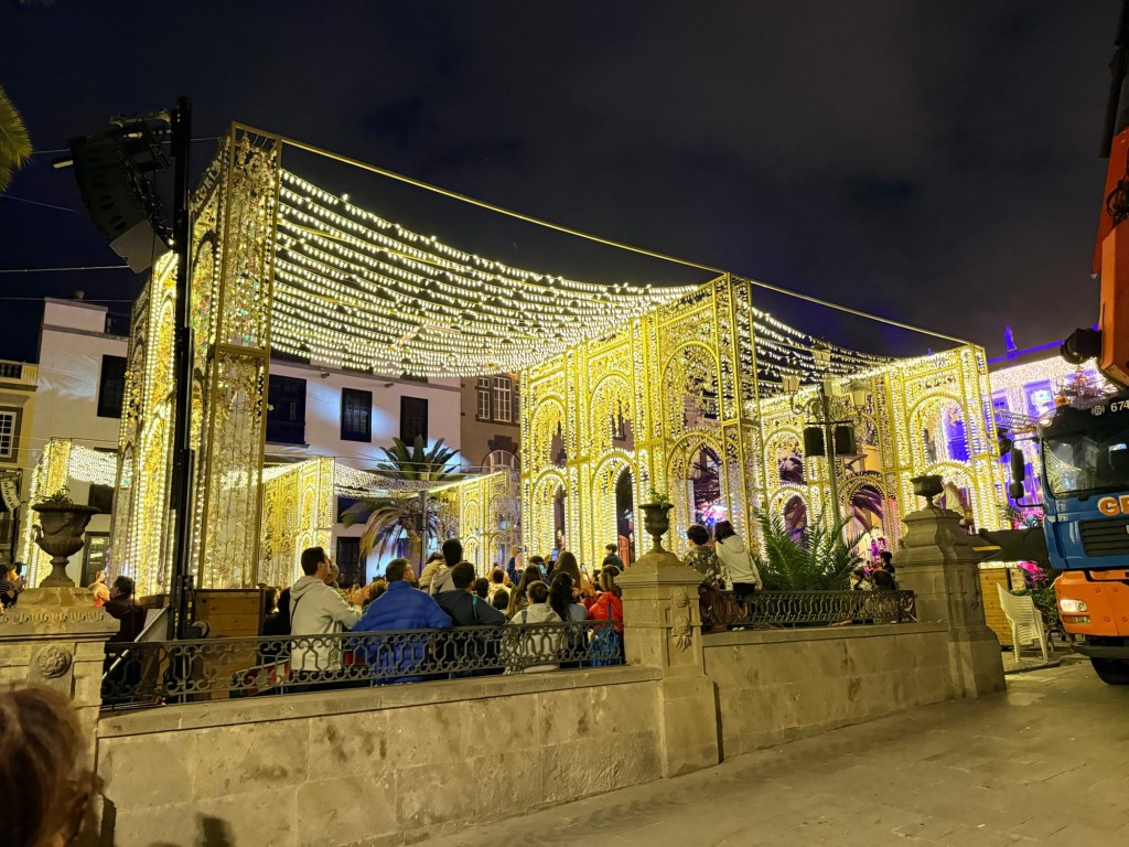 Lite senare var det dags att ta bussen in till stan för att se ljuständningen på Plaza Santa Ana. Det var packat med folk och svårt att få en bra plats trots att jag var där en timme innan det skulle börja.