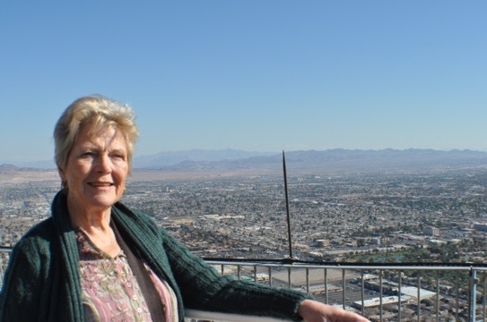 Efter frukost tog vi ”monorailen” till andra änden av the Strip till Stratosphere, 350m högt.