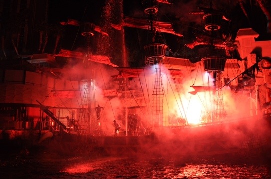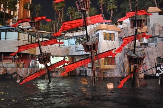 Så var det dags att se showen vid Tresure Island med det sjunkande piratskeppet, nästa anhalt blev Mirage där vi såg ett vulkanutbrott. Vi tittade omigen på det fantastiska vattenspelet utanför Bellagio innan vi haltade hemåt.