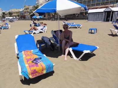 Hem för en snabb lunch och tro det eller ej, sedan gick vi till stranden. Solen sken igen från klarblå himmel och det fläktade det så skönt. Sätter in en bild så ni ser att det är sant! 😜 😉