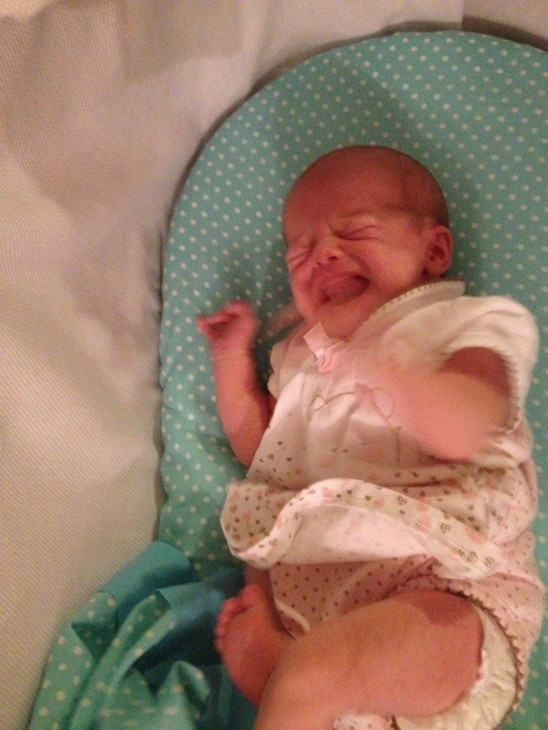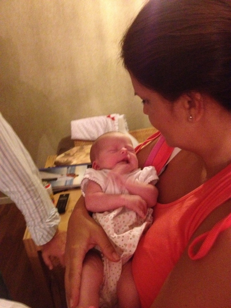 Den lilla var inte på sitt bästa humör, men lugnade sig när mamma tog upp henne för att ge henne mat.