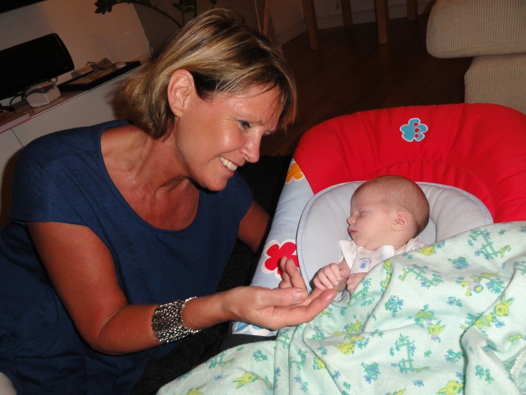 Lite senare… Lite senare åkte vi upp till Patrik och Desi för att beundra lilla Daniela. Vi hade med oss en tårta och lite presenter.