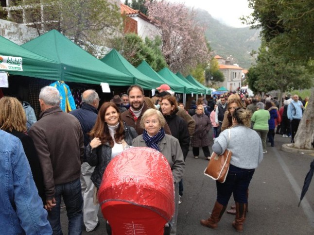 där de idag firade Mandelblomsfest. Mandelblom var det ont om, men packat med folk och kallt som tusan, blåsigt och tidvis ett lätt duggregn.