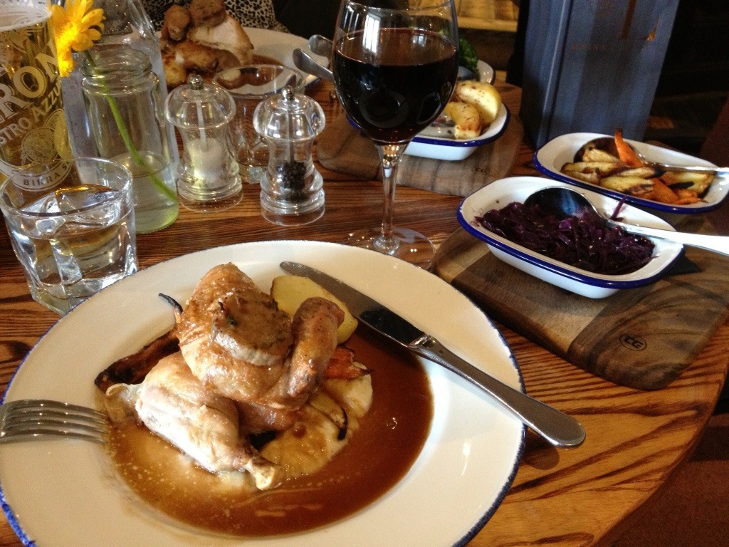 Idag blev det ett pub-besök och en typisk engelsk söndagslunch på en trevlig pub som dessutom hade en trio som spelade soft jazz. Helt underbart.