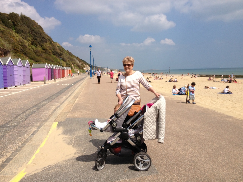 Fredag Det blev en lång promenad längs stranden i det fina vädret tillsammans med barnens mormor Christine. För att slippa köra vagnen upp den branta vägen så tog vi linbanan upp.
