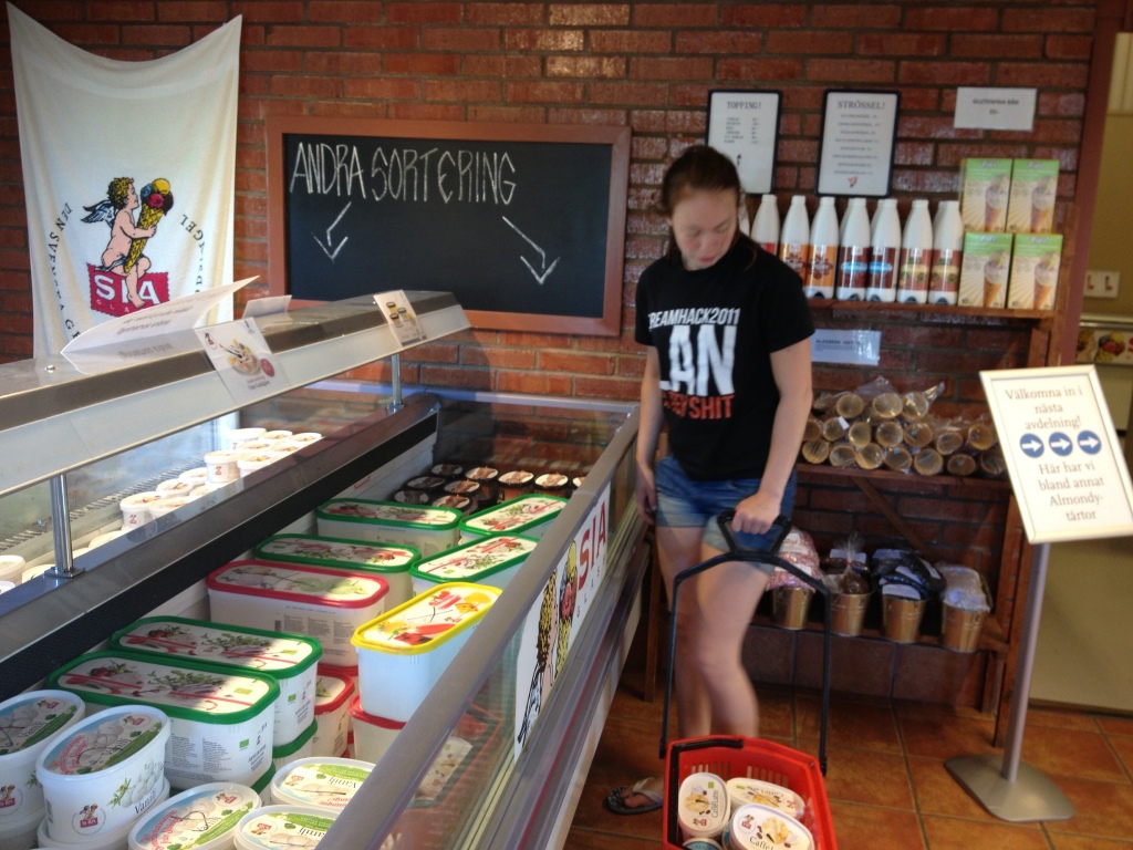 Härliga soliga, varma och lata dagar. Syrran jobbar för fullt med alla deklarationer som ska vara färdiga nästa vecka, så henne ser man endast vid matbordet och knappt det. Idag fick Anna och jag åka och handla och naturligtvis blev det även ett obligatoriskt besök hos Sia- glass.