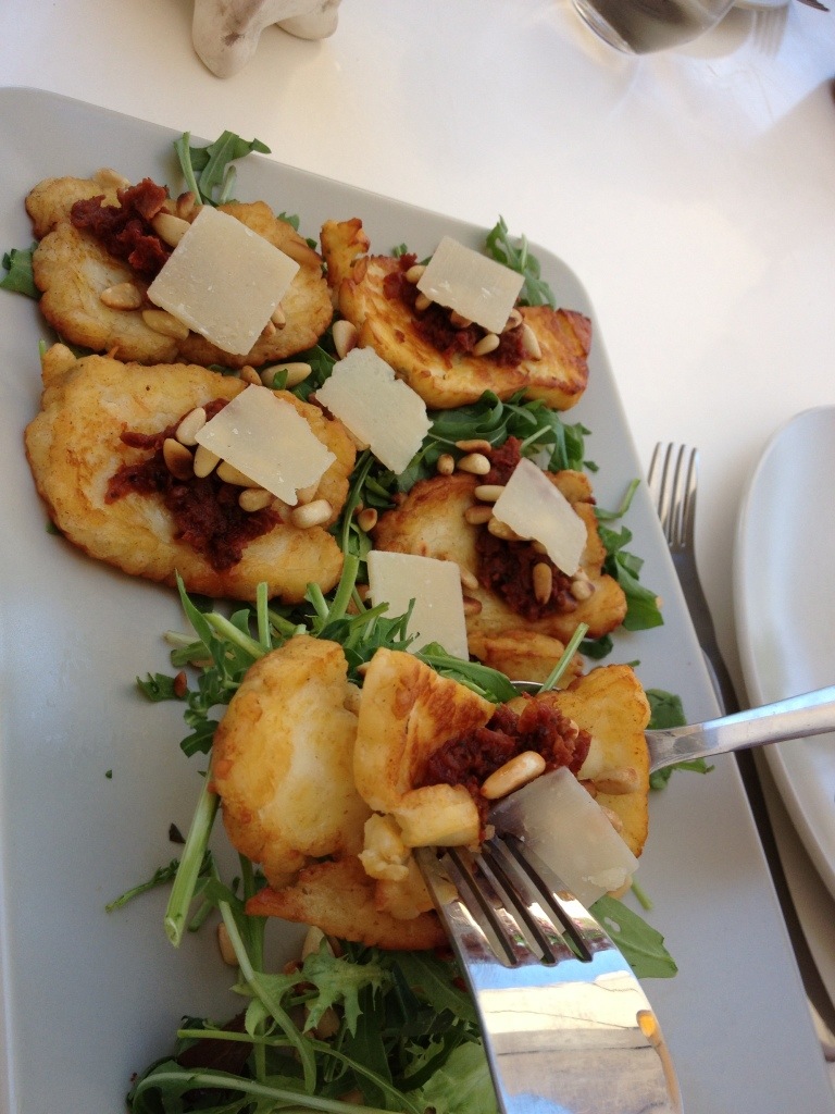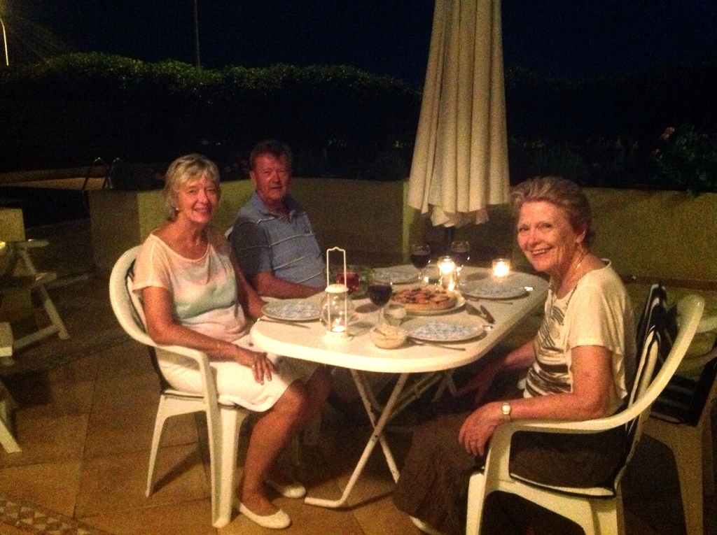 Efter ett dopp i poolen åt vi lunch i trädgården i skuggan med en härlig bris från havet. Ulla bjöd på Halloumiost, mycket gott.