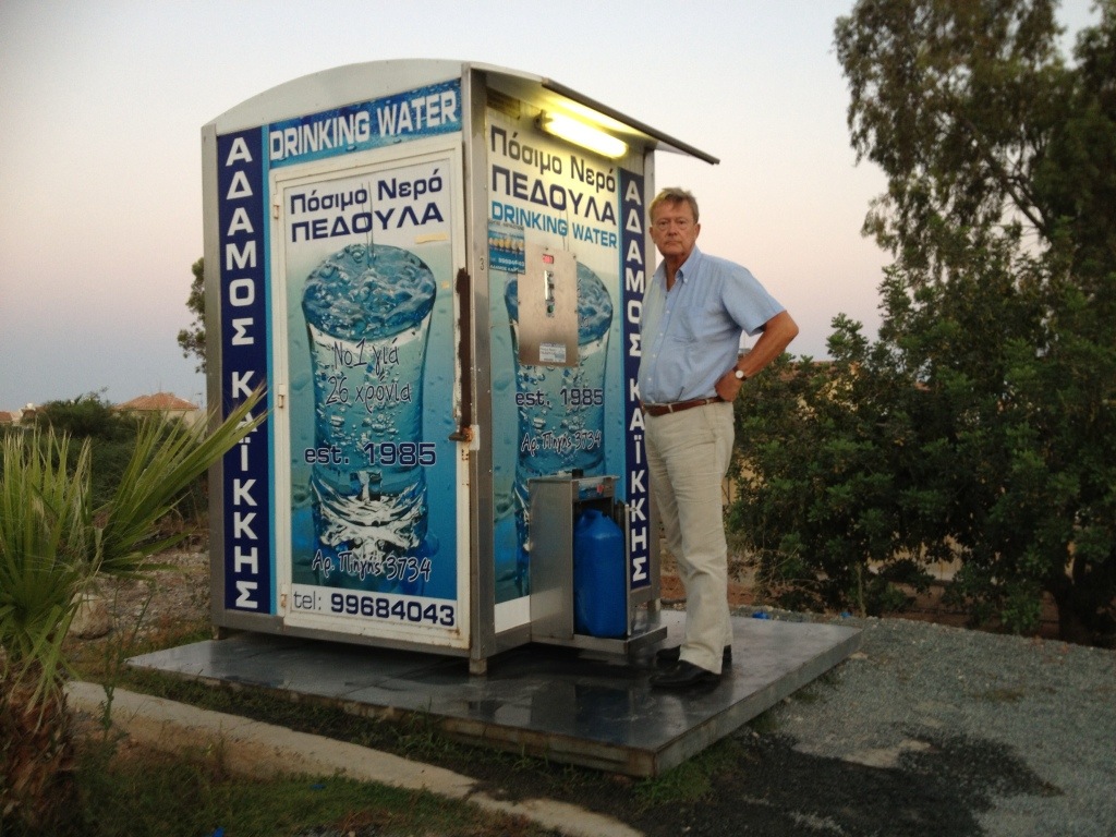På hemvägen stannade vi för att köpa dricksvatten. Björn hade en 20 litersdunk med sig som han fyllde för 1.20€.