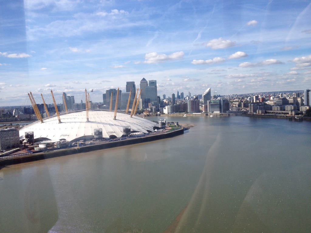 Vi började dagen med att ta linbanan över Themsen, en runda på O2 och en fika på Starbucks.