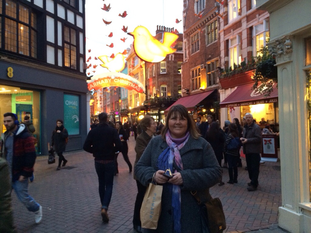 Igår tog vi det lugnt, men idag tog vi bussen intill stan. Det är så fint med alla juldekorationer. Här är en bild från Carnaby Street.