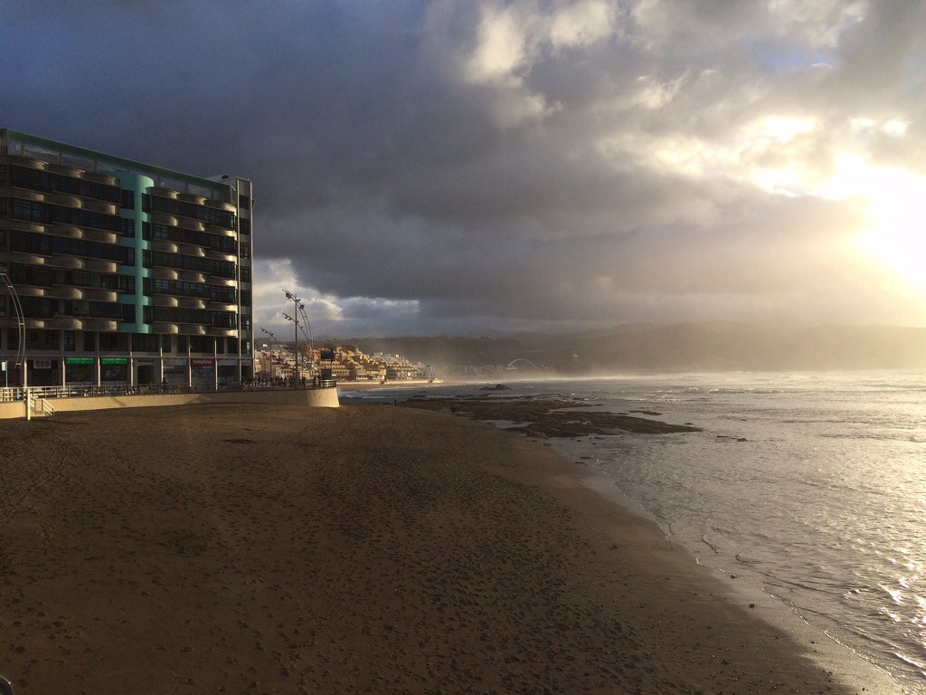Hem gick jag längs Canteras och tog detta foto när vågorna slog över revet.