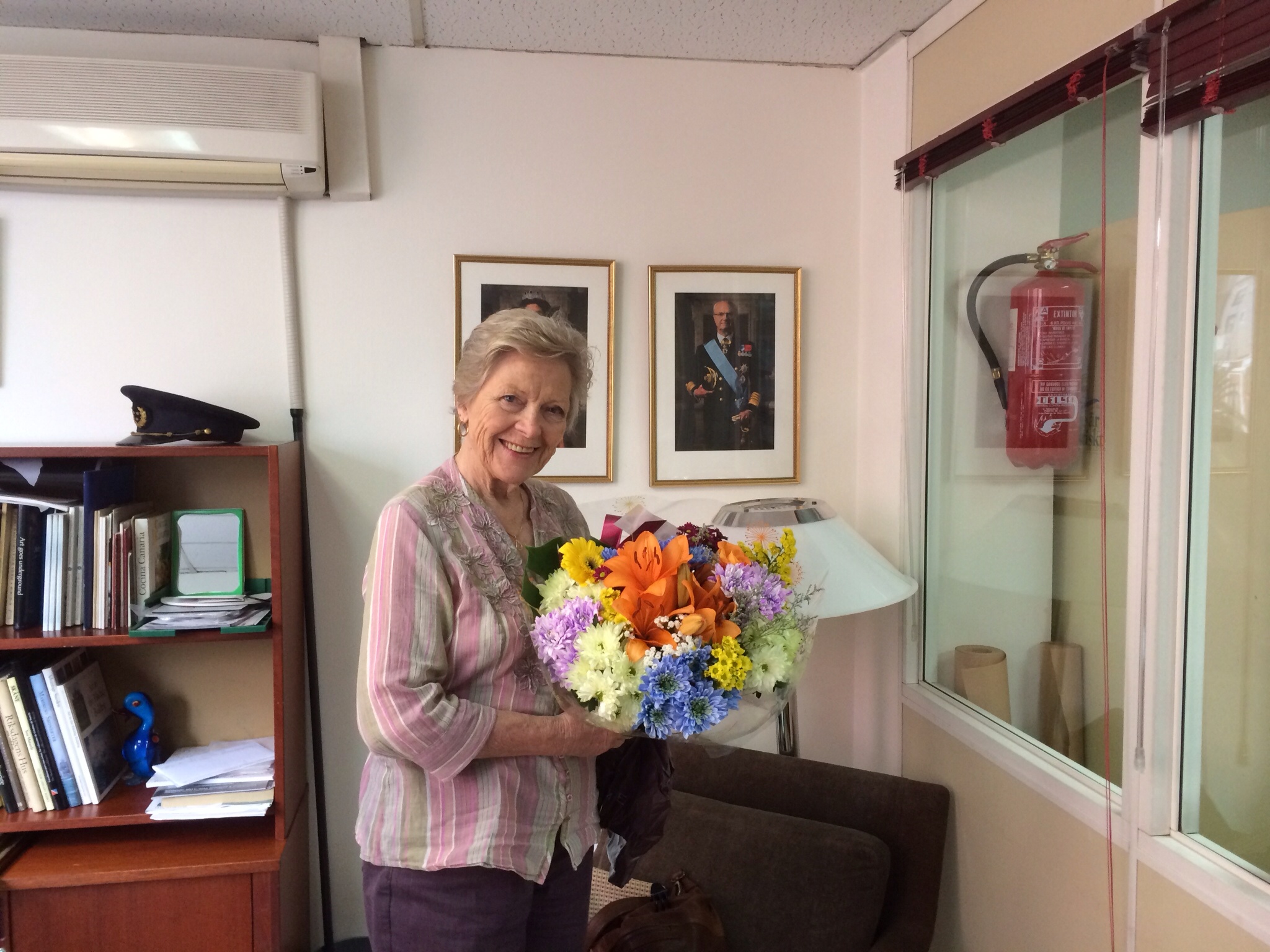 Blommor Idag var jag uppe på konsulatet och hämtade en jättestor blombukett som Ann hade haft med sig från kyrkan i syd. Det var ett tack för de år jag jobbat som revisor i kyrkan. Ett jobb som härmed är avslutat.