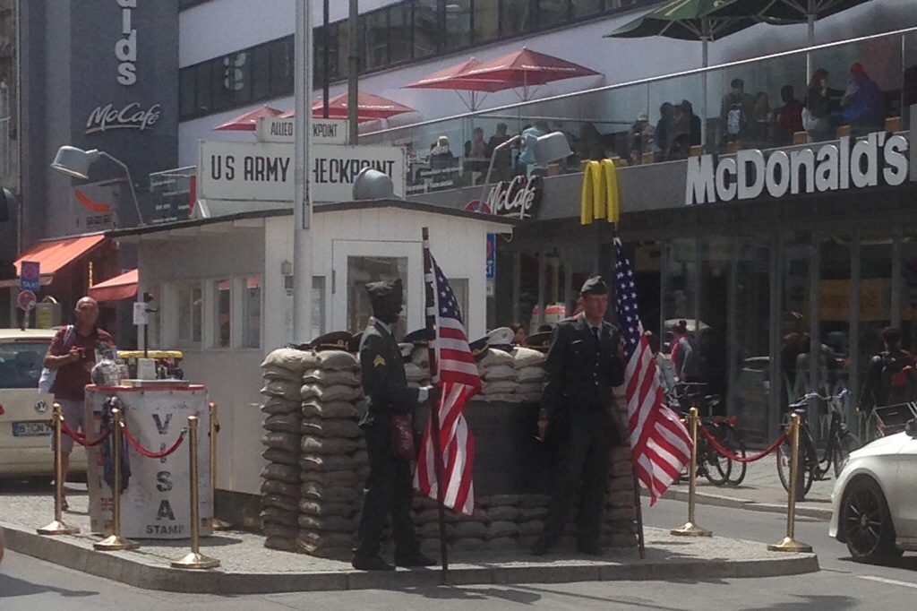 Därifrån tog vi turistbussen (vi köpte biljett för två dagar) och hoppade av vid Checkpoint Charlie där vi gick runt och tittade, mycket intressant. Inte alls som jag såg det förra gången för 35 år sedan!