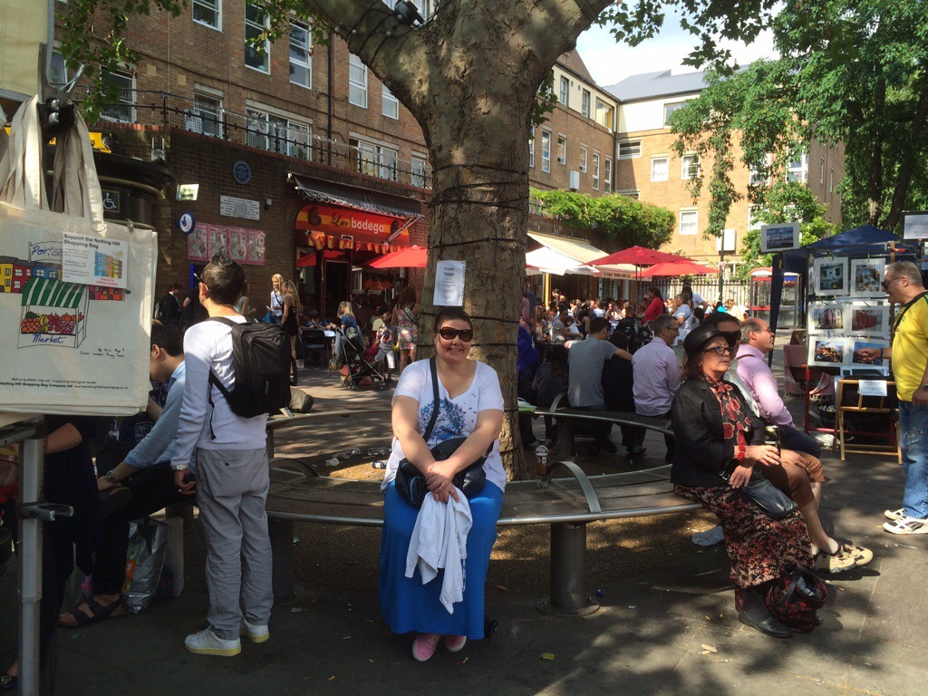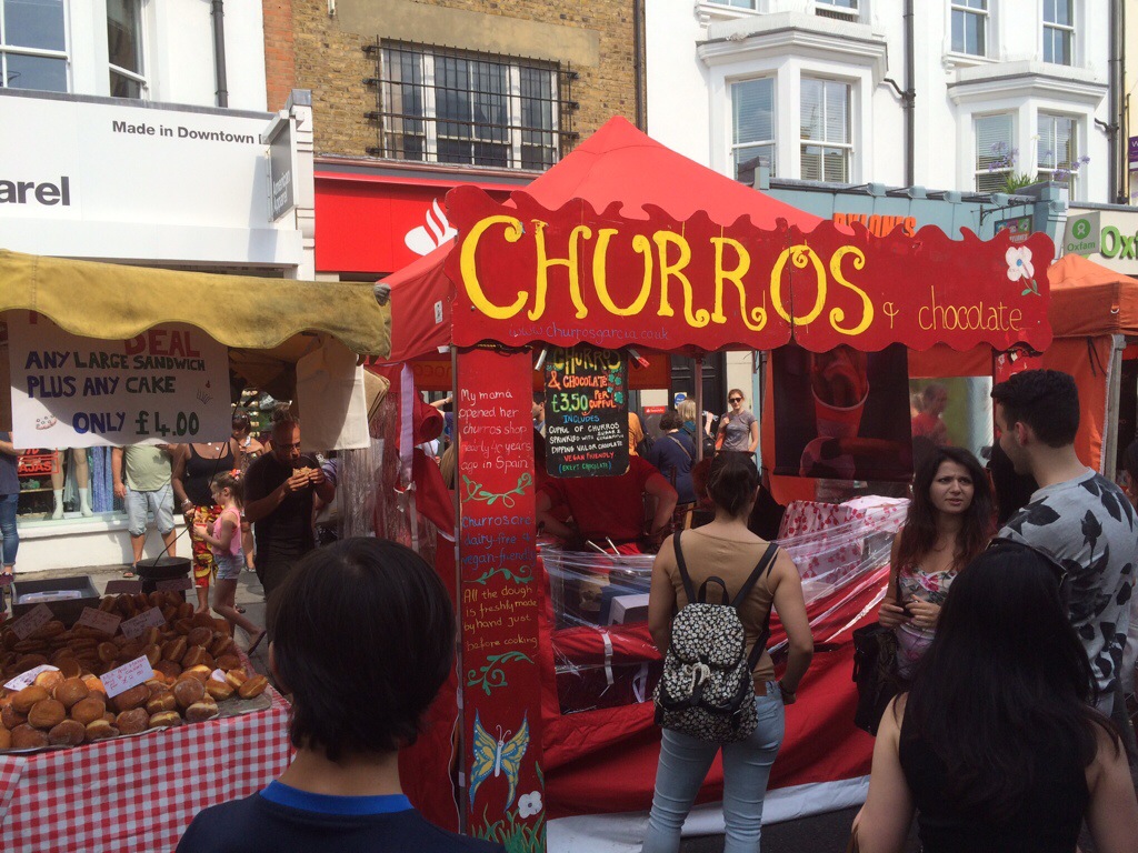 Idag har jag varit i Notting Hill på Portobello Road. En marknad med lite av varje. I slutet av den långa gatan fanns en spansk supermercado med enbart spansktalande personal, där vi handlade lite chorizo och ost. Bredvid låg en öppen plats med flera spanska barer.