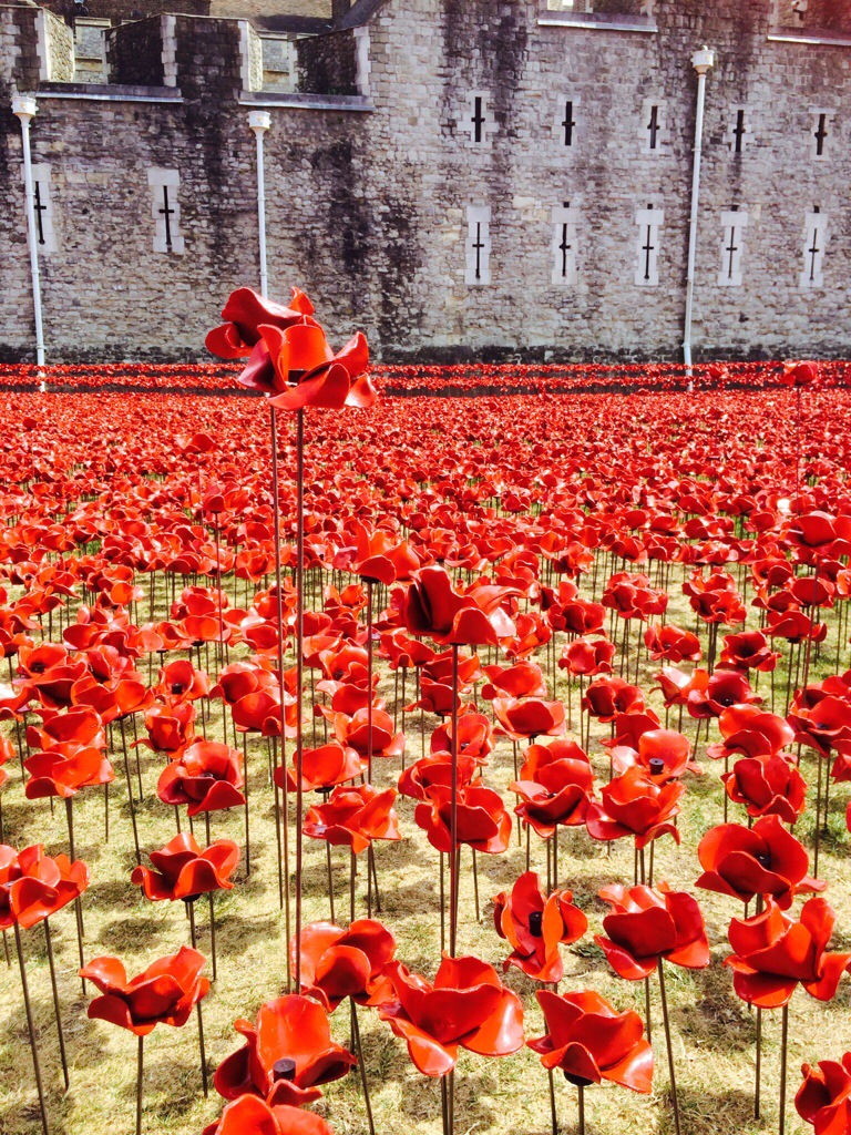Det är i år 100 år sedan kriget började och därför planteras 888.246 porslinsvallmor i Towerns vallgrav, en för var och en av de britter som förlorade livet i första världskriget. Frivilliga startade att plantera den 5 augusti och den sista blomman kommer att planteras den 11 november.