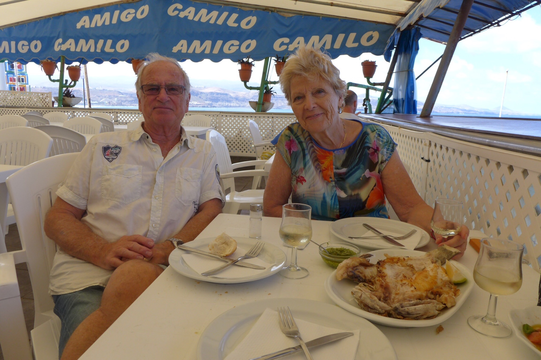 Senare på kvällen en promenad längs Canteras med Dolores och en bit mat med blivande brudparet.