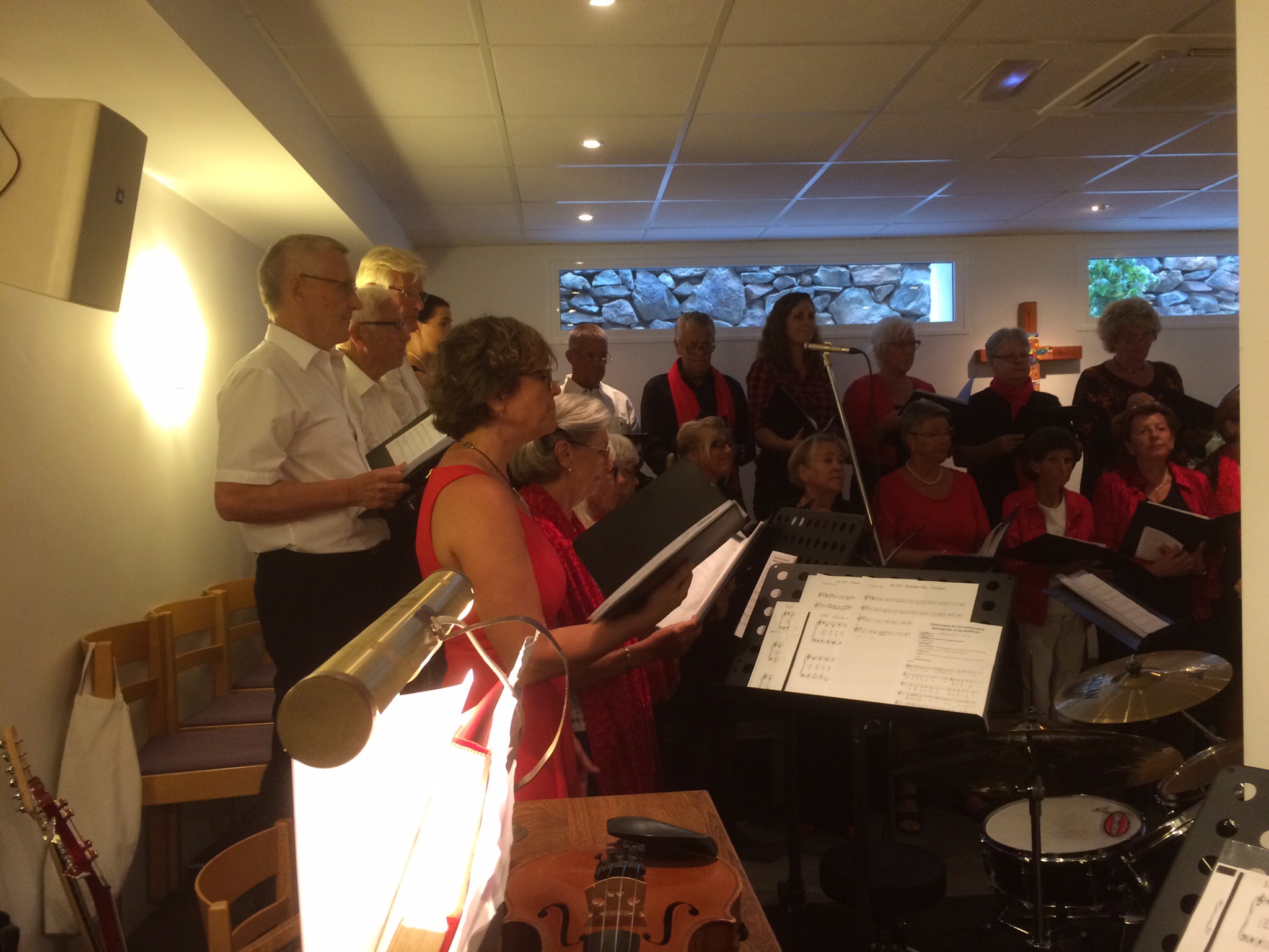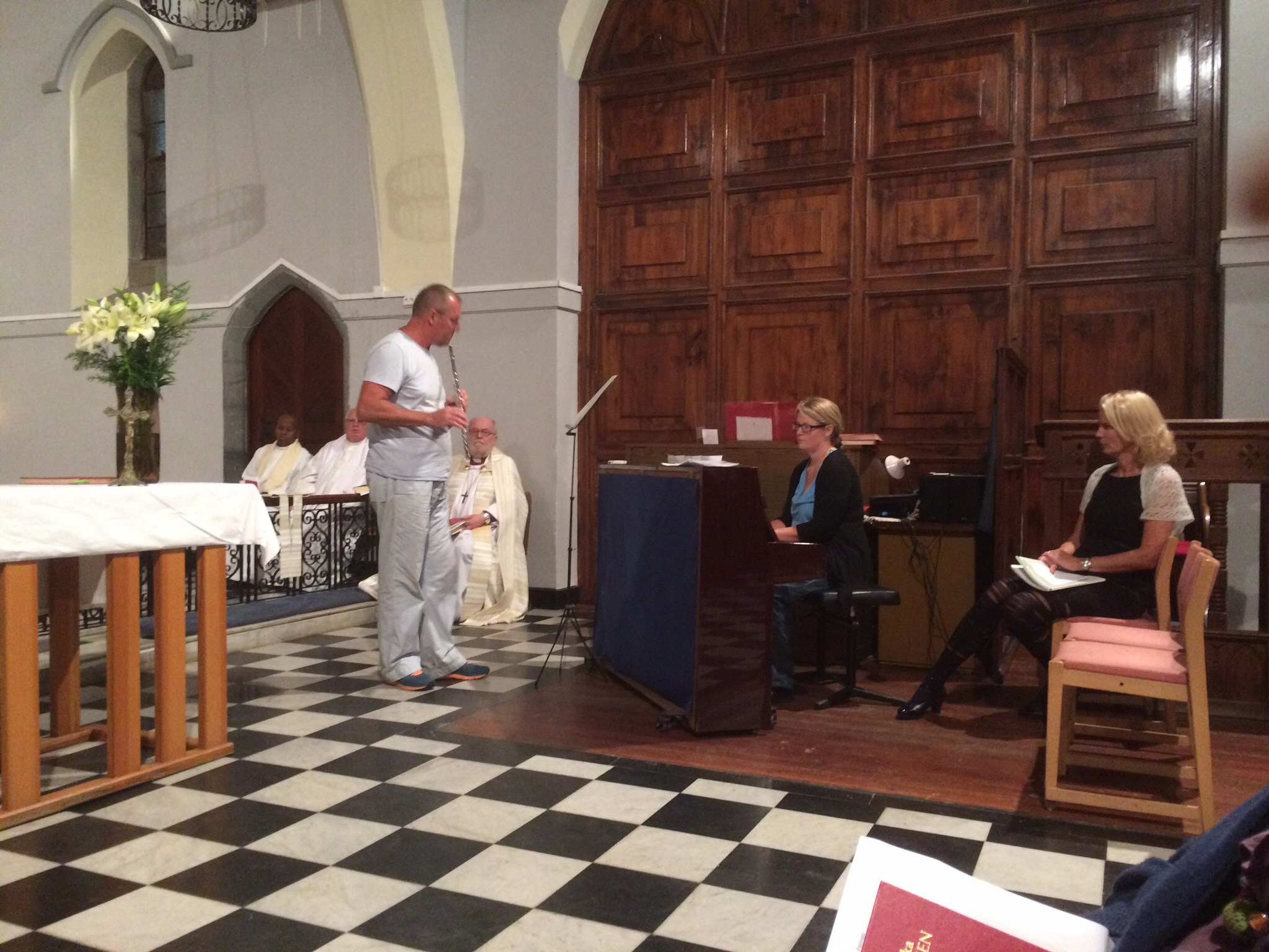 Kören var bra, men Maria som spelade tvärflöjt, kantorns fru med trumpet och Gunilla (prästen) på fiol hördes inte alls, de överröstades av sången och orgeln.