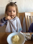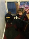 Idag var Thomas ledig och vi gick ner till stan där vi först åt lunch på Valentinos. Efter maten hjälpte barnen morfar att dammsuga under borden.