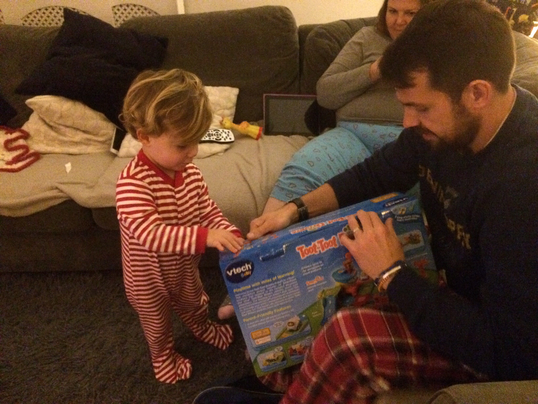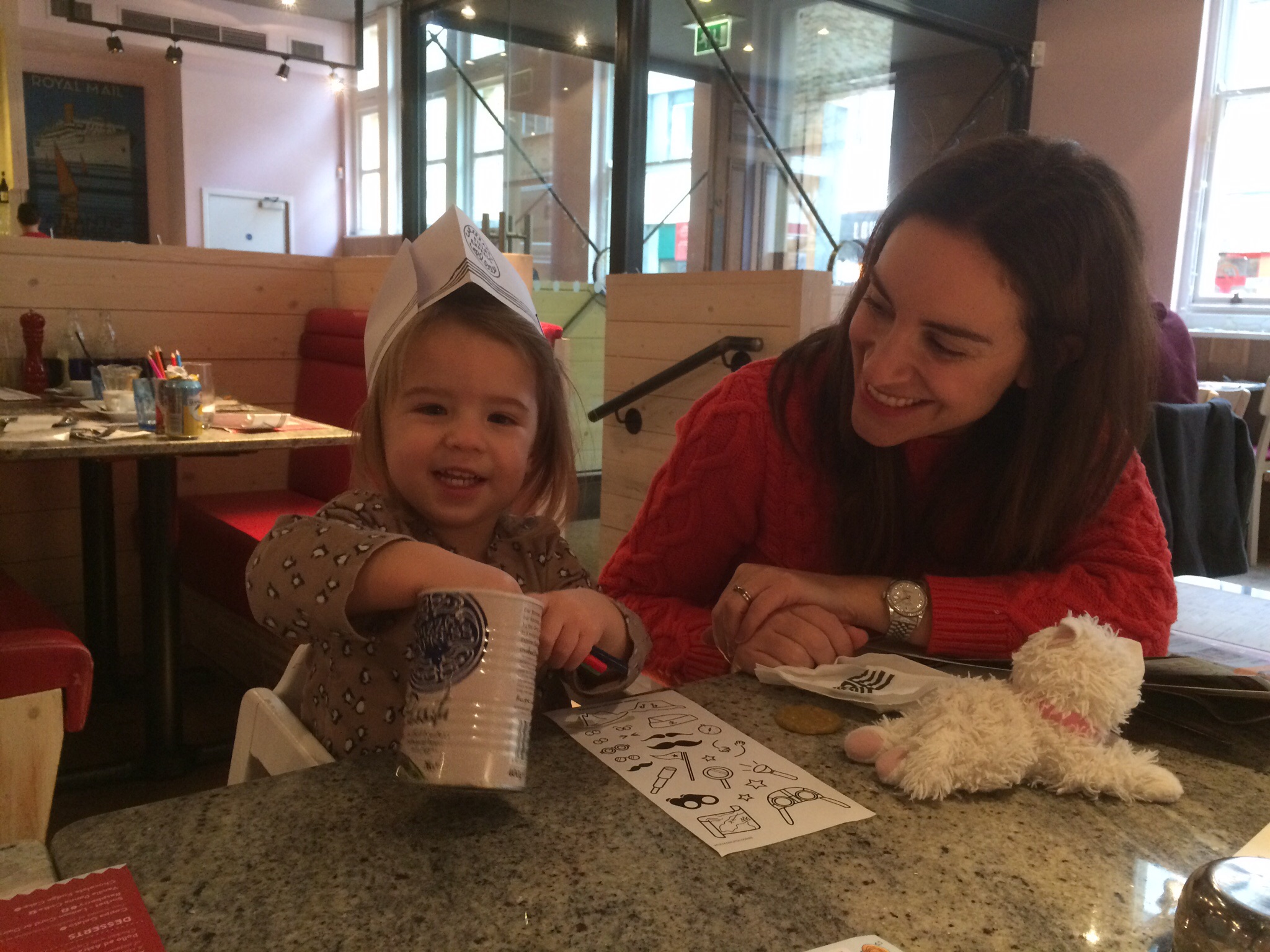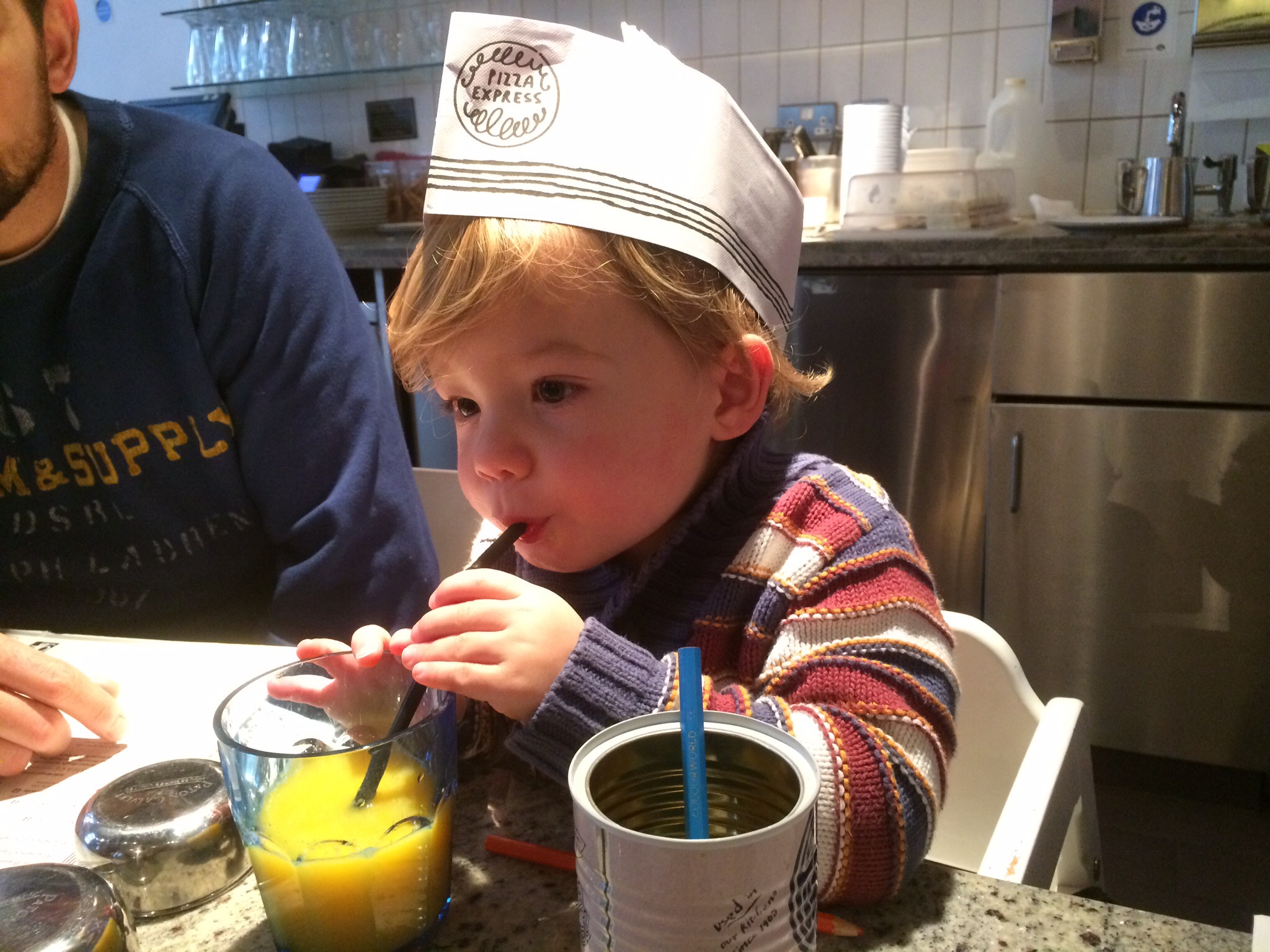 Idag var Thomas ledig och vi gick ner till stan där vi först åt lunch på Valentinos. Efter maten hjälpte barnen morfar att dammsuga under borden.