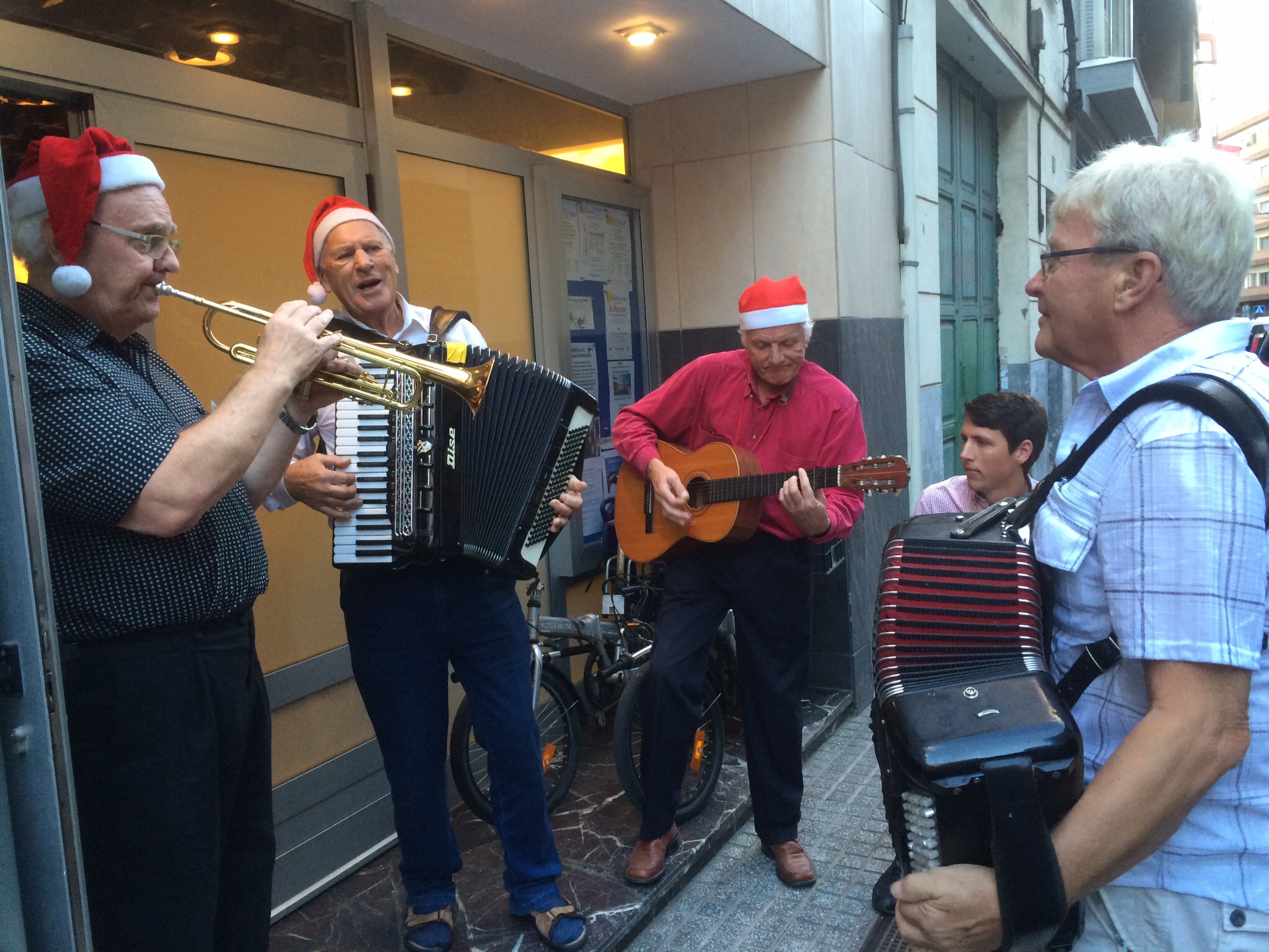 Julbasar I kväll var det julbasar på turistkyrkan. Utanför stod detta gäng och underhöll oss med julsånger innan dörrarna öppnades. Det såldes lotter med många fina vinster Det serverades julgröt och skinksmörgås samt kaffe och lussekatter. 28.135658 -15.432978