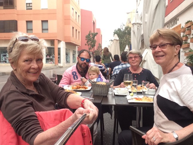 Vi fortsatte längs kusten och körde genom alla turistgetton. Tänkte stanna i Maspalomas för lunch, men där kom vi inte heller ner till kusten, så till slut hamnade vi i Playa del Ingles. Då hade vi hunnit bli ordentligt hungriga, men Espetada öppnade inte förrän klockan sex, så vi tog första bästa restaurang.