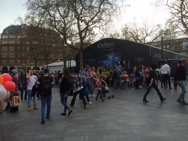 Åkte in till stan tidigt och promenerade hela Regent Street ner till Leicester Square. Där hade de byggt upp en utställning om Askungen,
