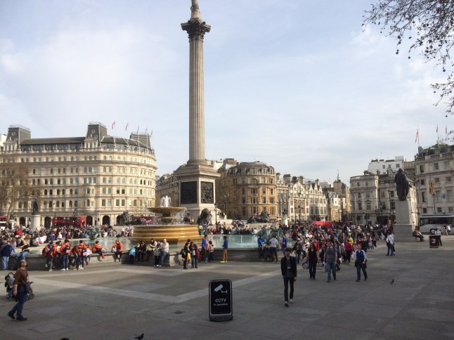 fortsatte ner till Trafalgar Square, massor av folk var där och njöt av det fina vädret och annat.