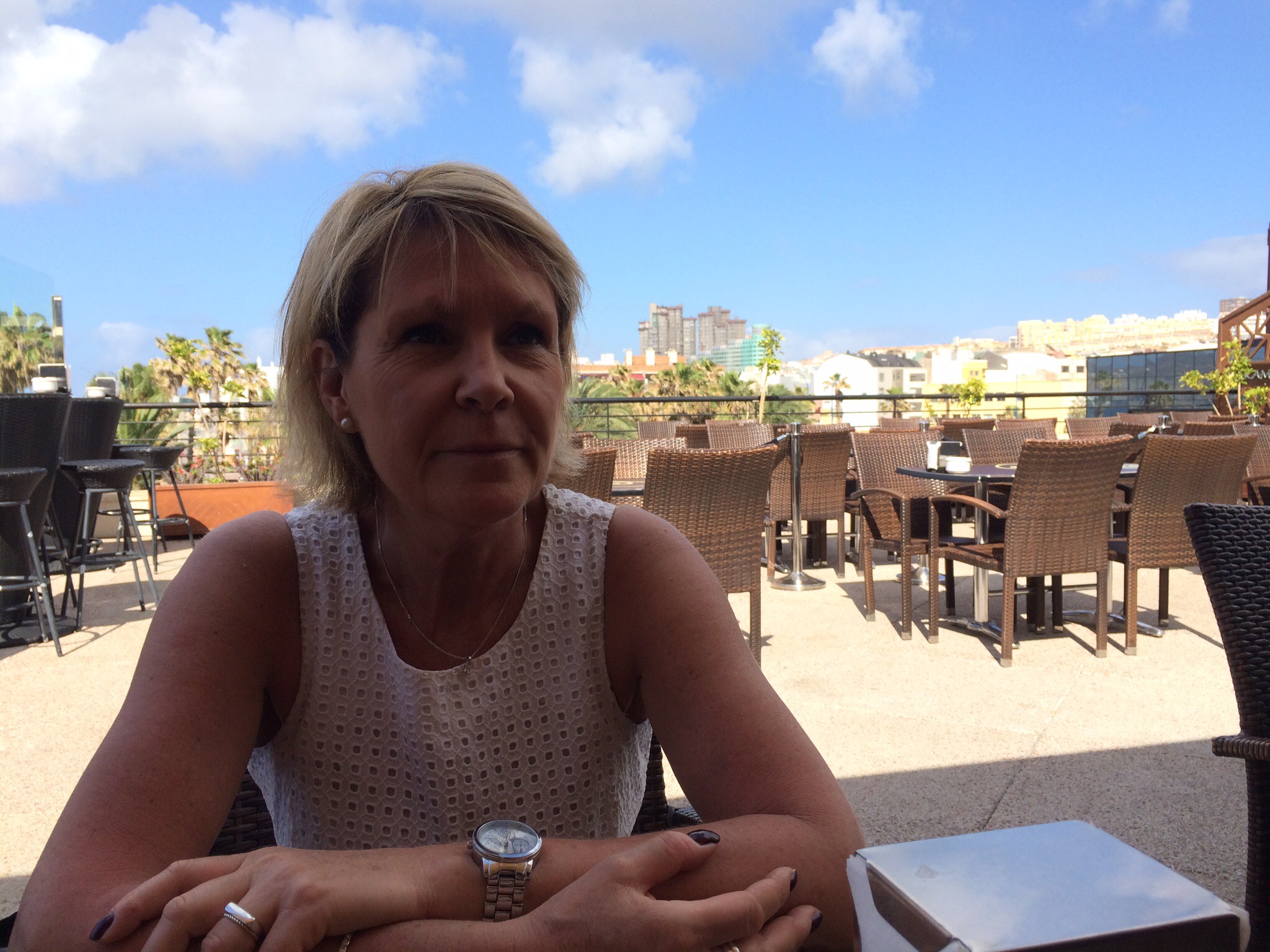 Efter lunch hemma en promenad till Las Arenas för mera shopping. Hem med paketen och så iväg till Allende för lite tapas och ett glas gott vin.