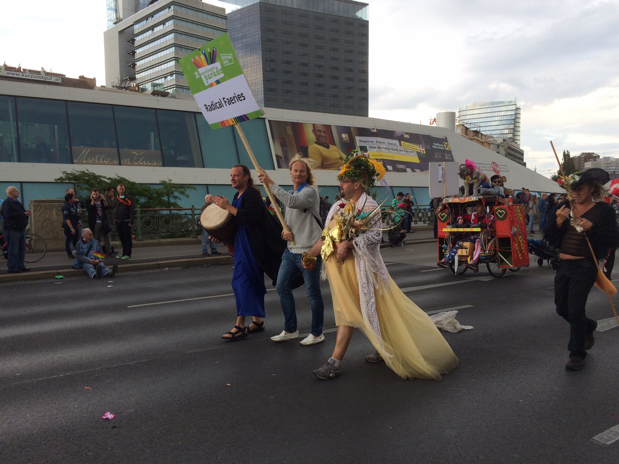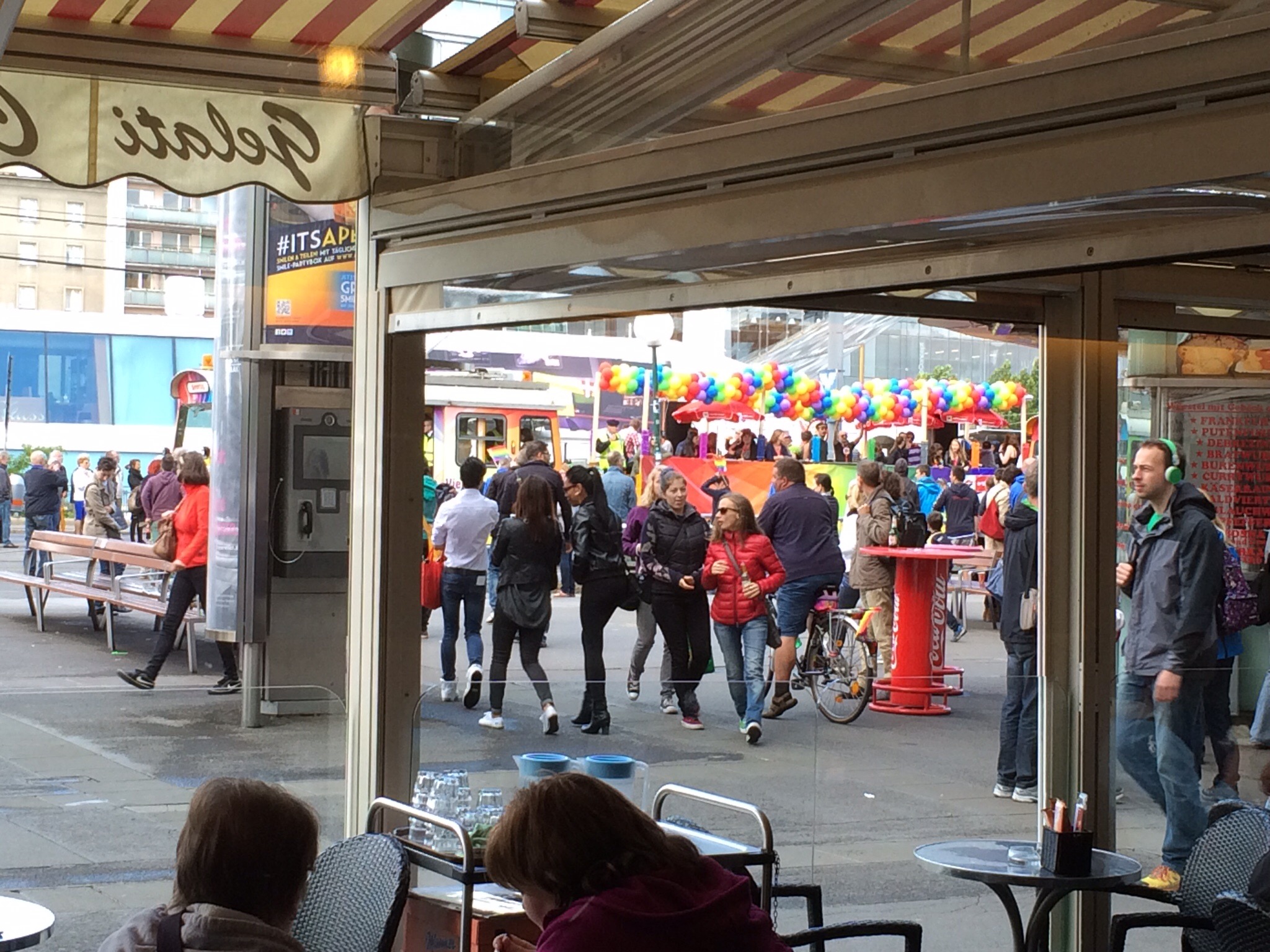 Medan vi satt på glassbaren gick prideparaden förbi, så vi rusade ut för att titta.