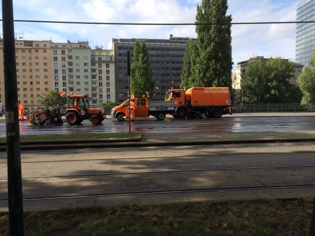 Men det bästa av allt var rengöringspatrullen som kom efter. Helt fantastiskt. Bilar som sprutade vatten, andra bilar som sopade och en massa folk som plockade. Detta direkt efter paraden innan man satte igång trafiken på gatan igen.