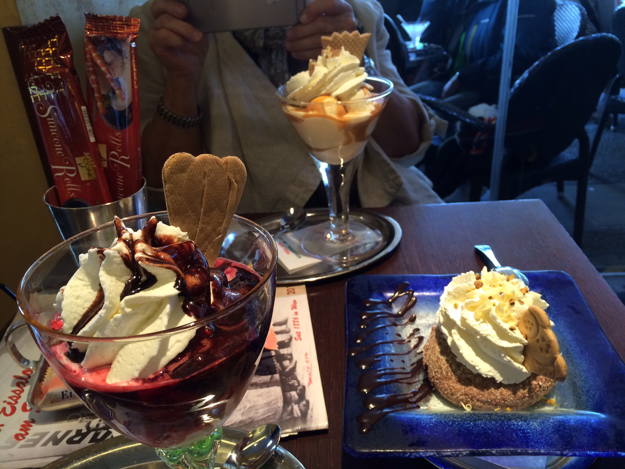 Mätta och belåtna fortsatte vi därifrån till Schwedenplatz där vi intog desserten på en glassbar.