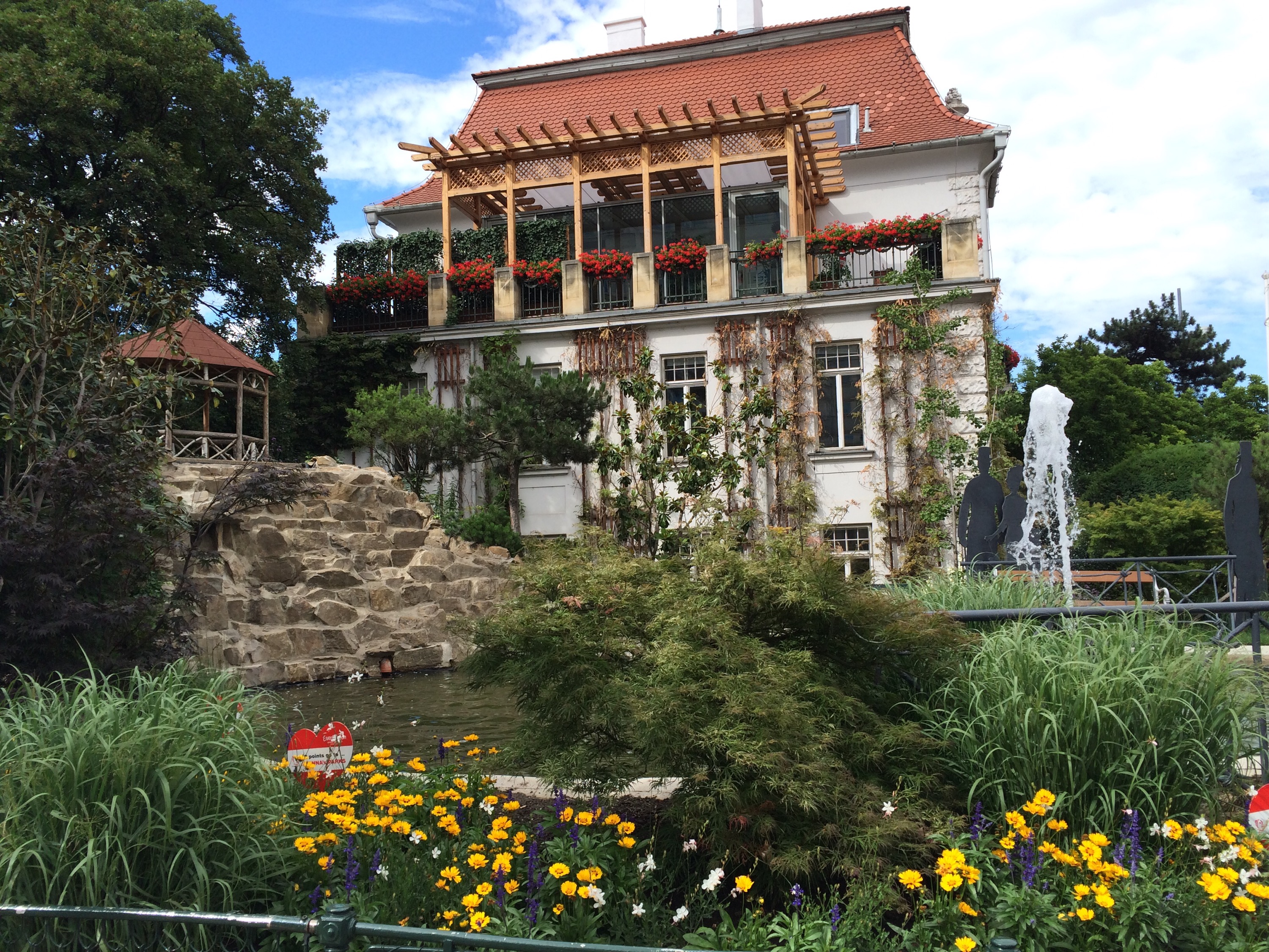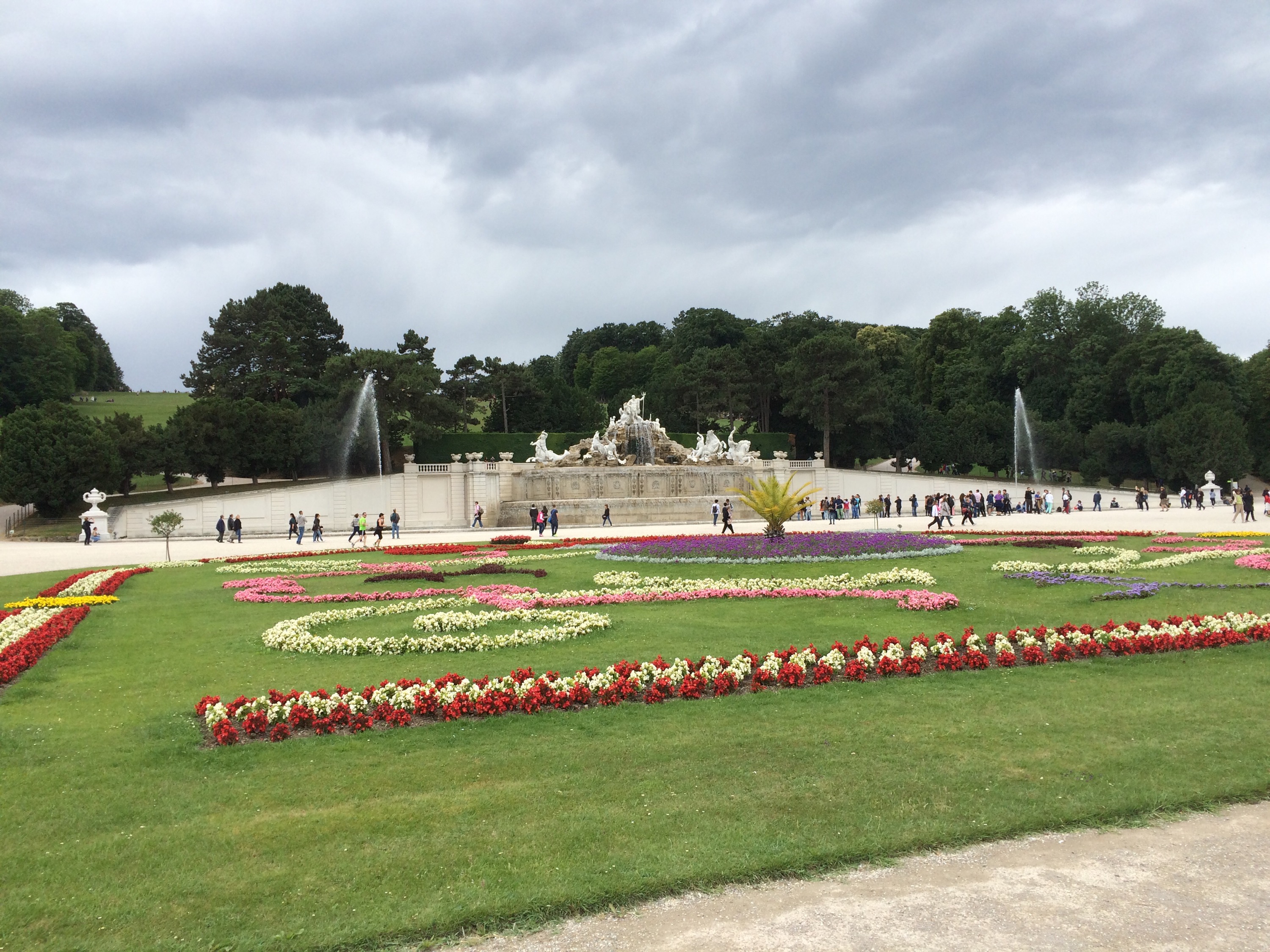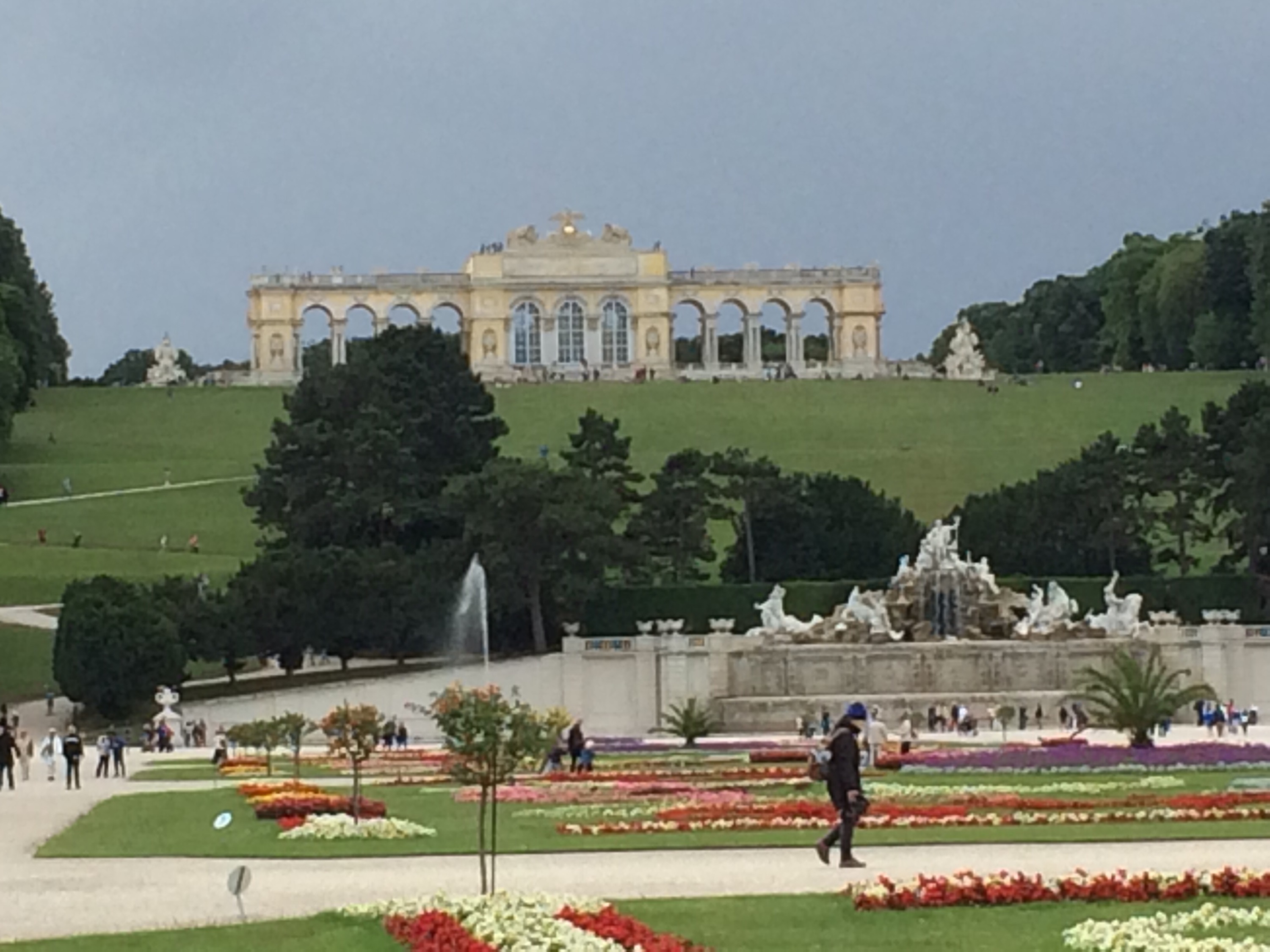 Därefter tog vi sightseeingbussen och hoppade av vid Schönbrunn. Ett mysigt litet sommarställe med bara 1.400 rum. Parken var fantastisk, välskött ock med många fontäner.
