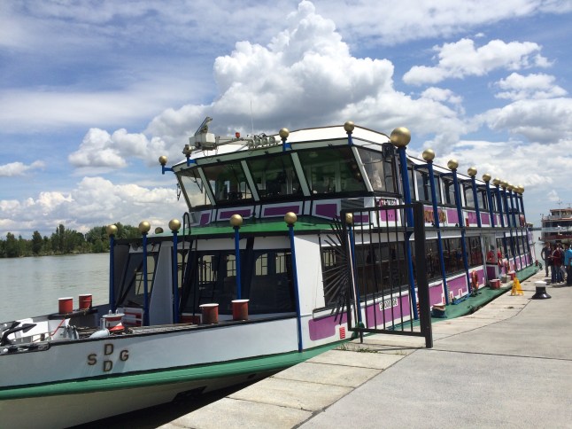 Dagen startade med frukost på samma mysiga ställe som dagen före, men nu var det en sur gammal käring så det var inte längre så mysigt. Därifrån gick vi ner till kajen för en båttur på Donau.