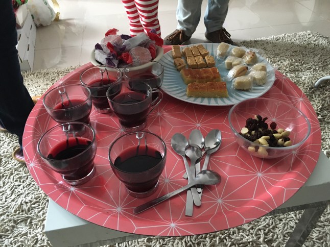Väl hemma såg vi På spåret och Skavlan medan vi smuttade på ett glas vin och lite tilltugg och lyssnade till musik från gågatan nedanför mina fönster.
