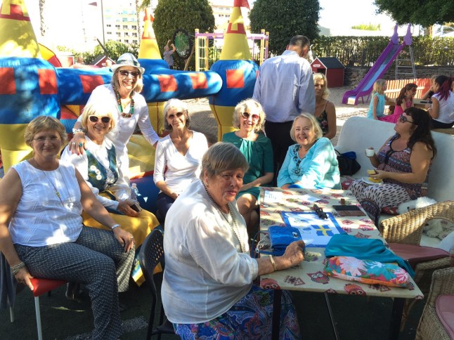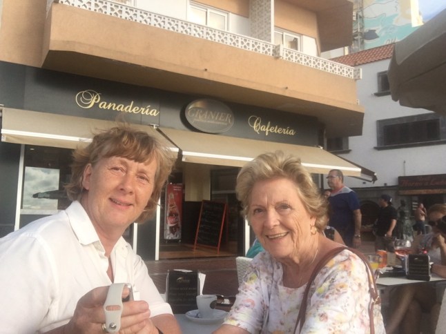 Idag kom städerskan på förmiddagen och jag kilade ut och drack kaffe med Amy och Anders. På eftermiddagen var det kurs i Appleaffären, som det är varje torsdagseftemiddag. Bara en halvtimme, men alltid snappar man upp något. Ria kom in till stan och var också med. Sedan tog hon och jag en promenad till Canteras, vi satte oss på en uteservering vid Playa Chica och tog ett glas vin och efter en stund dök Lissy upp.