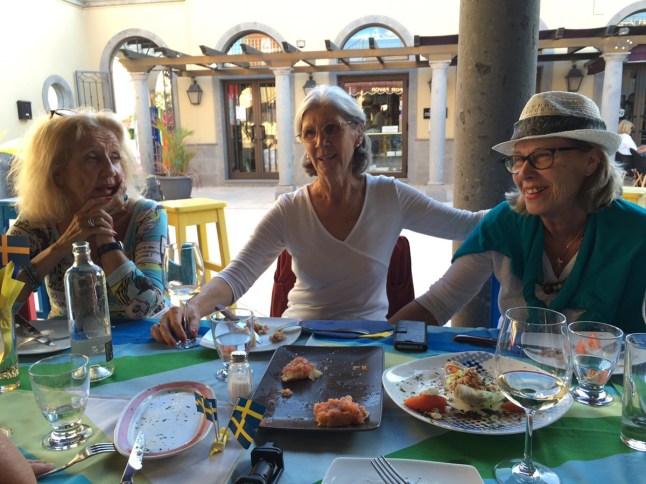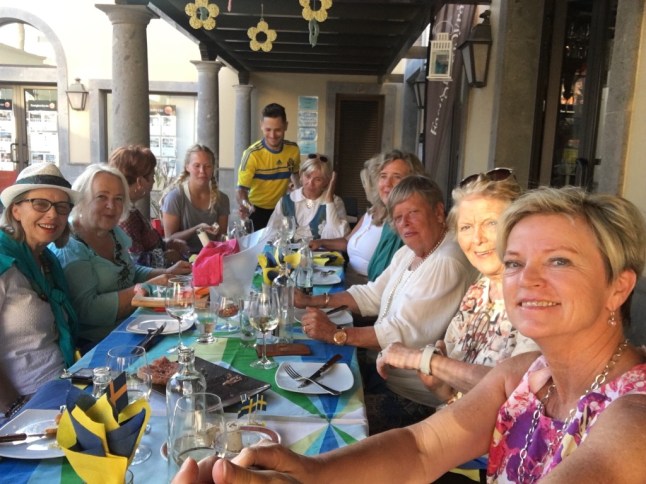 Som ju numera är Sveriges nationaldag firades i San Agustin på svenska skolans gård. Vår konsul, iklädd sveridräkten, höll ett jättefint tal, vi sjöng nationalsången och hurrade. Det serverades fika och smörgåstårta, men det smakade vi inte på eftersom vi var ett gäng som efteråt skulle ut och äta.
