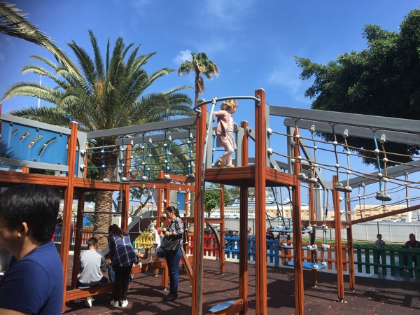 På förmiddagen jobbade Desirée på marknaden och under tiden var jag och Daniela på lekplatsen. Precis när jag tagit detta foto fortsatte hon framåt och trampade fel så hon föll handlöst till marken, men som tur var blev det endast ett sår på läppen.