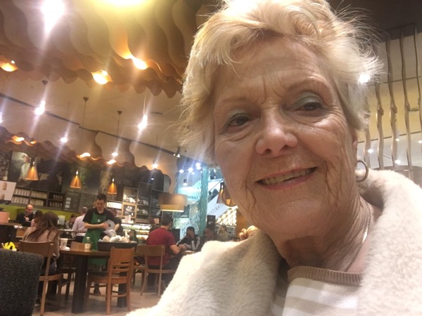 Helt underbart väder, 16 grader och sol från en klarblå himmel. Kappan var helt överflödig. Gick till det stora köpcentret, gick runt där en bra stund och tog en fika på Starbucks.