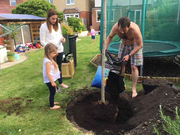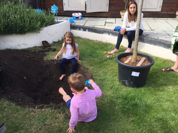 Idag anlände jag till Bournemouth efter en perfekt flight, vi anlände 30 minuter före utsatt tid och hela familjen var där och mötte. Väl hemma sattes man i arbete då ett träd skulle planteras i deras underbara trädgård. Efter lek med barnen serverades en god middag.