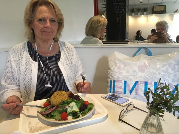 God mat och trevlig personal, varav en del pratade perfekt svenska. Därifrån gick vi till ett varuhus i närheten där vi köpte ”selfthreading needles”, (vet inte hur jag ska översätta det till svenska, men ser just att Ria lagt upp en bild på FB). Vi fortsatte till Duke of York Square där vi drack ett glas libanesiskt vin.