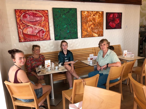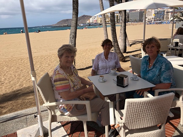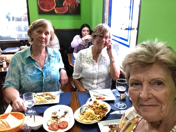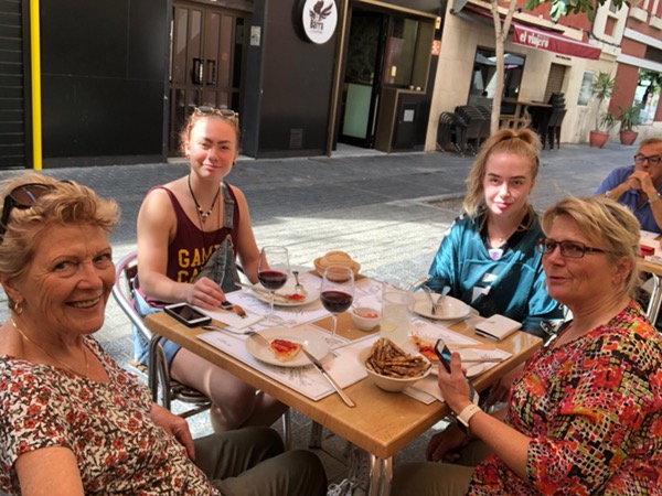 Härlig sovmorgon innan det var dags att göra sig iordning för att åka in till stan där jag stämt träff med min svägerska. Första söndagen i månaden är alla affärer öppna och många aktiviteter är i gång på Triana. Ungdomarna hade flera stånd på olika platser. När de var färdiga åt vi lunch på La Brava.