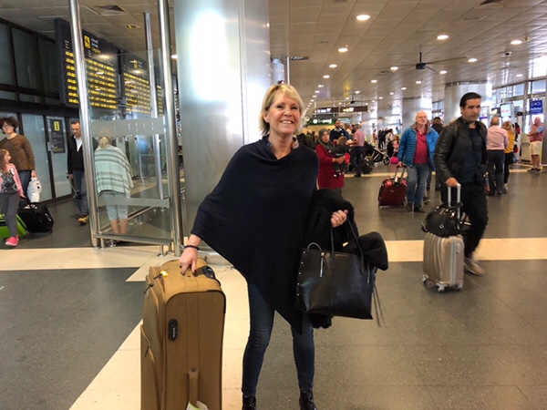 Torsdag åt vi lunch på SkandiTapas, jag åt isterband och Eva åt laxrullar. Medan vi satt där kom den svenska och den kanariska lucian förbi.