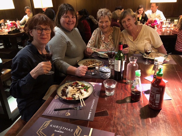 Men idag var hon ledig så vi åkte in till stan där vi träffade Ria och hennes syster Eva. Vi åt lunch på en Thairesturang och därefter en kopp kaffe på ett konditori. Mycket trevligt.