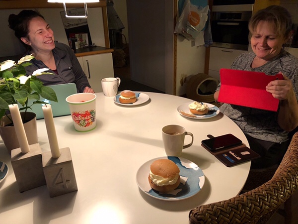När man precis plockat ner julsakerna är det dags att börja med semlor. Och semlor hade Mariannes son Jesper och hans flickvän Alina med sig när de kom och hälsade på. Senare på kvällen åt vi en god middag som bestod av en jättegod lasagne lagad av Jesper.