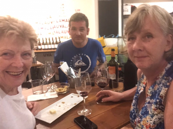 Idag har jag varit och skött om mina fötter, det känns helt underbart. Senare i kväll var jag med Ria på Lamalauva. Jättetrevligt. Ria hade med sig två flaskor vin, en från Sicilien och en från Libanon, som hon gömde etiketten på för att sätta Fermin på prov om han kunde gissa druvan och varifrån det kom.