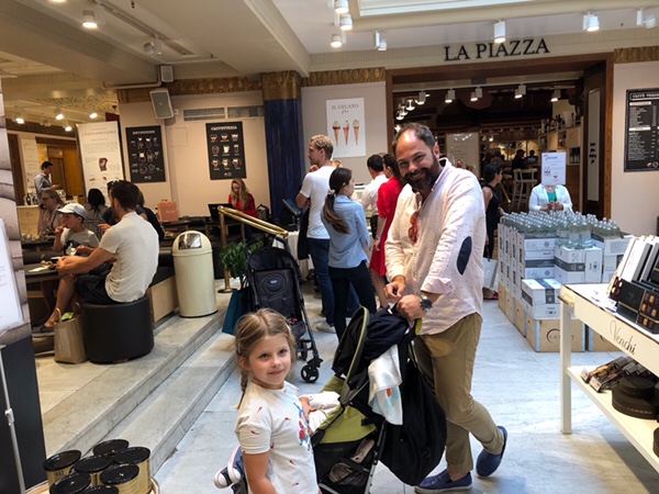 Vi åkte in till stan och gick runt lite och tittade i affärer och sedan åt vi lunch på Eataly. ”Eatalys grundfilosofi är att kombinera en levande marknadsplats med restauranger, saluhall och utbildning. Eataly lägger också stort fokus på lokala producenter, som bidrar med färska råvaror och ingredienser som ett komplement till de italienska produkterna. Den unika miljön bjuder in gäster till att ”Äta, handla och lära” om högkvalitativ italiensk mat och dryck.”