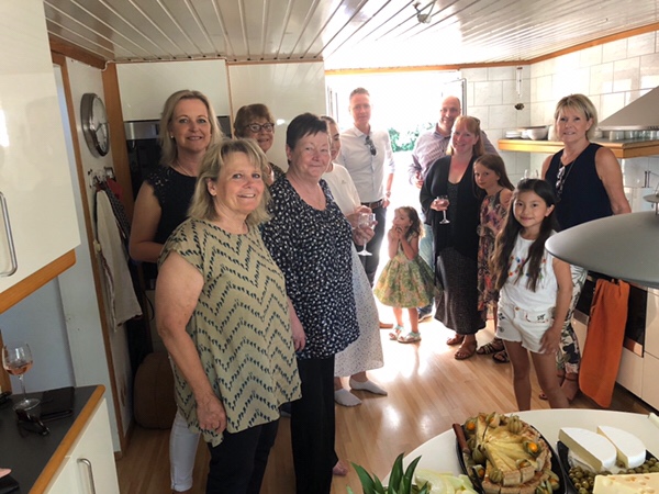 Jag måtte vara väldigt lättlurad. Nu har det hänt för tredje gången! Eva, Jonna och jag åkte in till stan för att handla lite åt Marianne. Vi åt också en glass och Eva ville absolut se havet så vi åkte ner till Haverdal. Jag stannade kvar i bilen och efter bara en liten stund kom de tillbaka med förklaringen att det blåste för mycket på stranden, sanningen var att hon fått ett sms att kusten var klar. När jag kommer hem står hela släkten där och sjunger och hurrar, en fantastisk buffé var uppdukad, massor med dricka, allt var som i en dröm. Ingrid kom från Helsingborg och Mattias med familj kom med husvagn från Uddevalla.