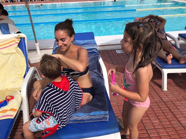 Så bussen tillbaka till Catalinaparken där de just nu har Cine + Food för att lyssna på en jazzorkester. Där fanns ju SkandiTapas representerat så vi hälsade på hos Anette och hennes son.