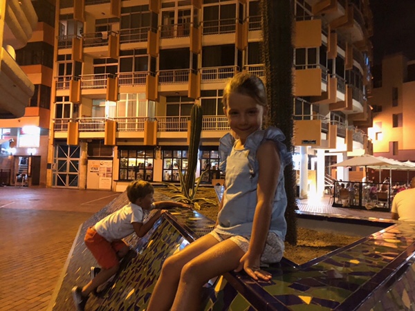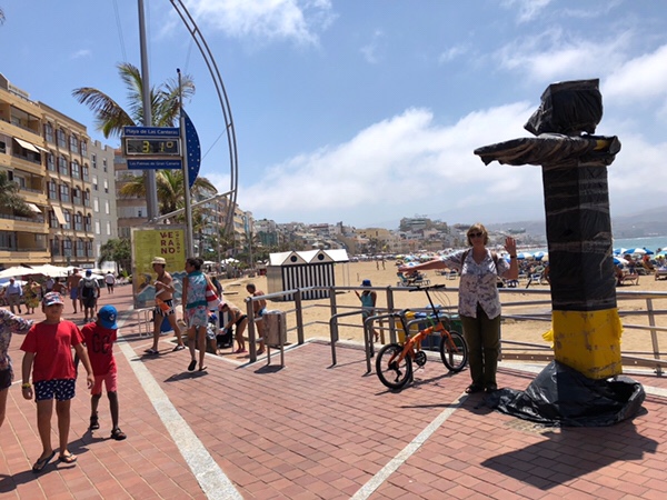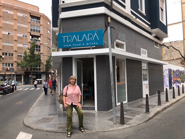 Vi fortsatte promenaden längs Canteras och kom så småningom till Catalinaparken där vi tog bussen in till Vegueta. Där blev det ett besök på La Otilia, en jättemysig liten restaurang. Jag ville dit för att se en utställning av fotografier där modellen är min dotter Dolores. Vi kom i grevens tid för i morgon stänger de för semester.